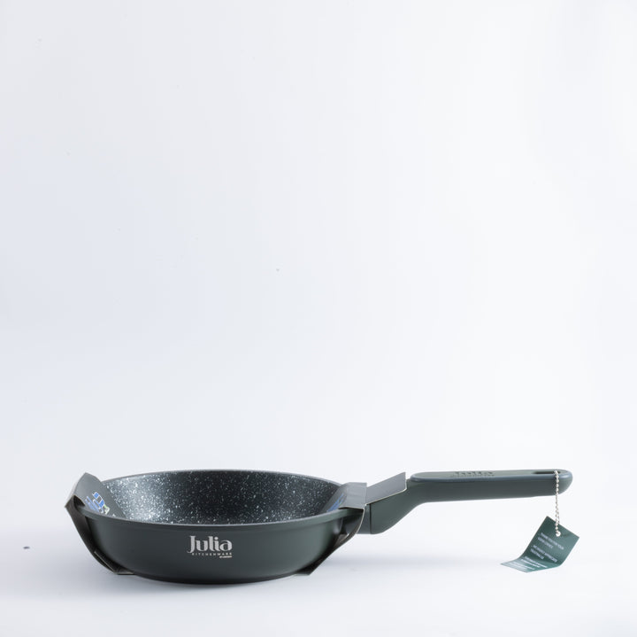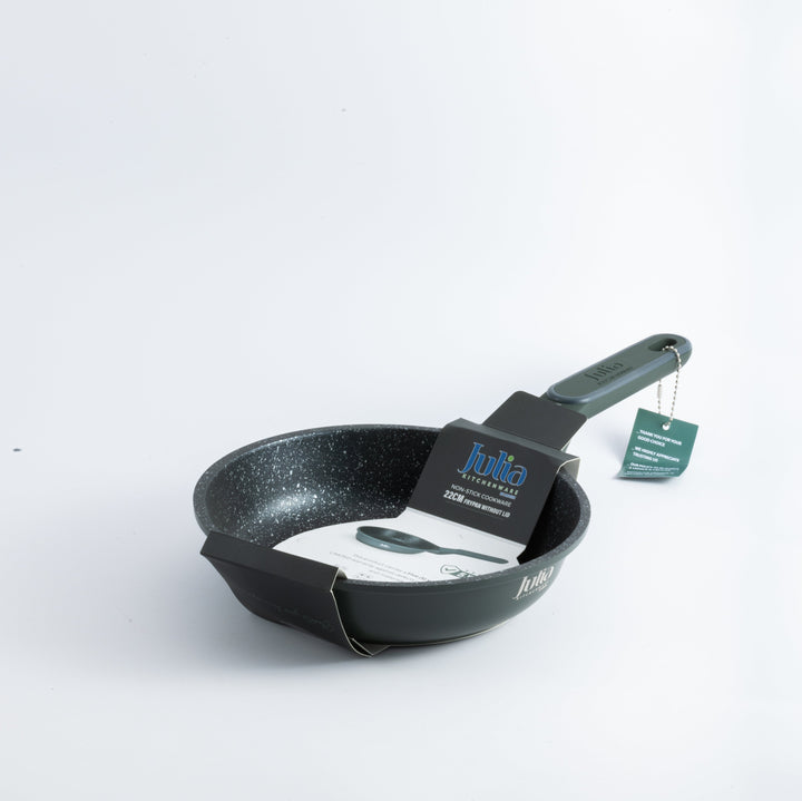 Elevate your everyday cooking with the Julia Elite Pro Frypan. Crafted for both performance and style, this 22cm frypan boasts a sleek green exterior and a two-layer black marble non-stick interior that is PTFE & PFOA free, ensuring safe, healthy cooking with effortless food release and easy cleanup.