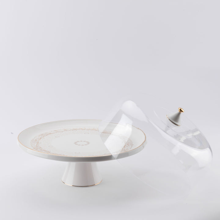 طقم مكون من 6 أطباق حلويات وستاند كيك وغطاء أكرلك وسكينة ستيل الحجم: 7.5 + 10 انش
