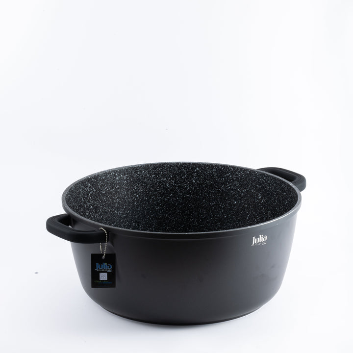 Elevate your everyday meals with the Julia Elite Pro Plus Casserole– a perfect blend of style, performance, and durability. This 40cm non-stick Casserole features a sleek black exterior and a double-layer black marble non-stick interior that is PTFE- and PFOA-free, ensuring safe, healthy cooking with easy food release and simple cleanup.