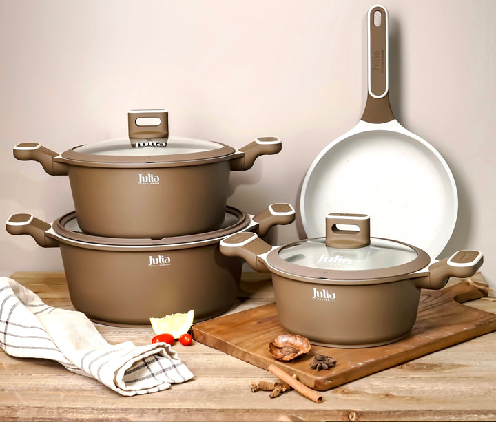 Stylish, versatile, and built to last, the Julia Elite Prof Cookware Set is the perfect upgrade for any modern kitchen.