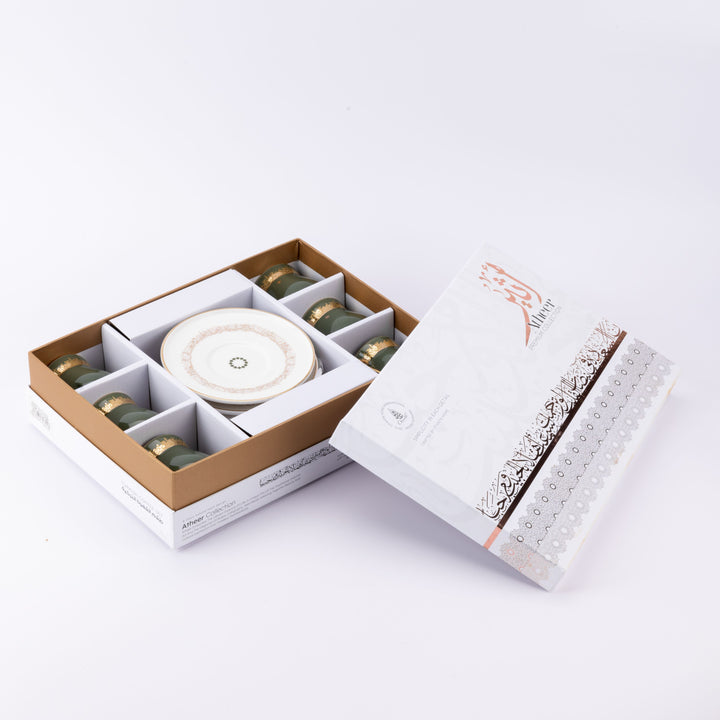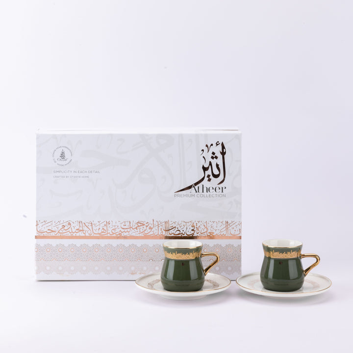 طقم القهوة التركية من أثير -أخضر وذهبي